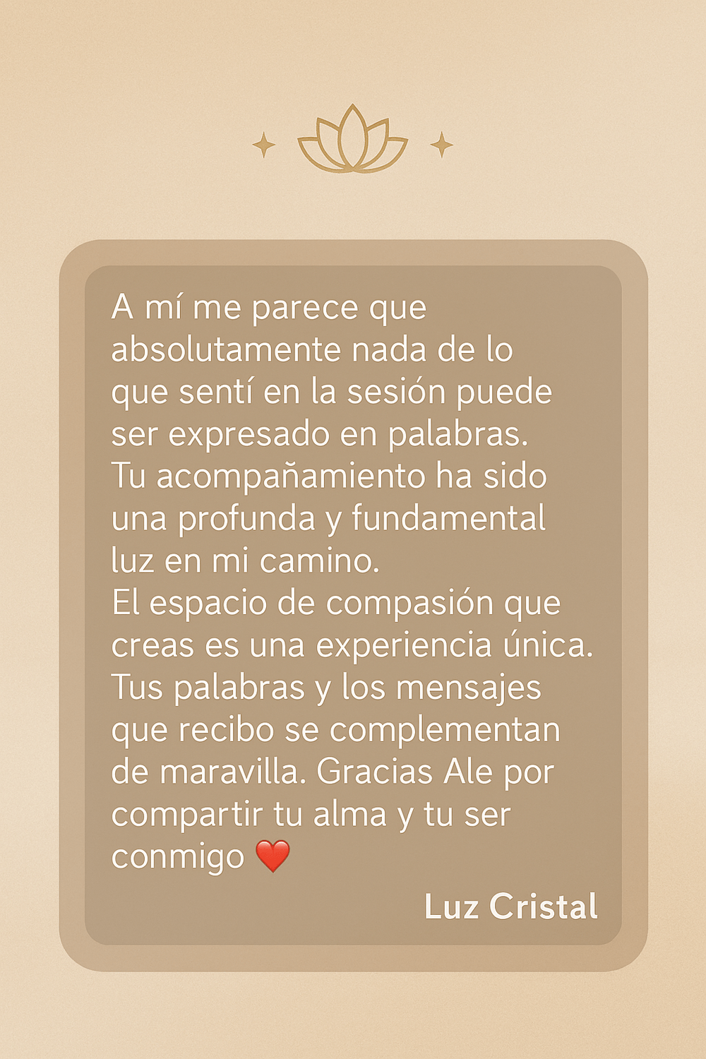 Valora la espiritualidad encarnada, el lenguaje del cuerpo y desea un espacio donde pueda sentirse vista, contenida y acompañada con suavidad. No busca soluciones rápidas, sino un camino amoroso, real y sostenido hacia sí misma.